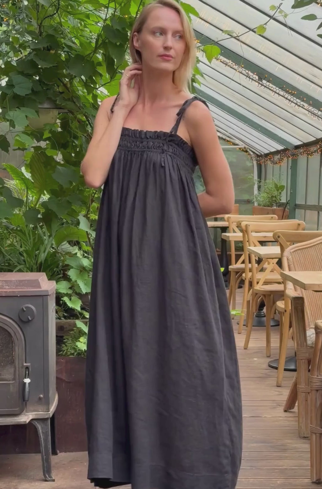 The linen Ballade dress is the epitome of effortless summer style. With its breezy, flowing silhouette and adjustable straps, this versatile dress transitions seamlessly from a relaxed day at the beach to an elegant evening gathering, making it a must-have for any warm-weather occasion.