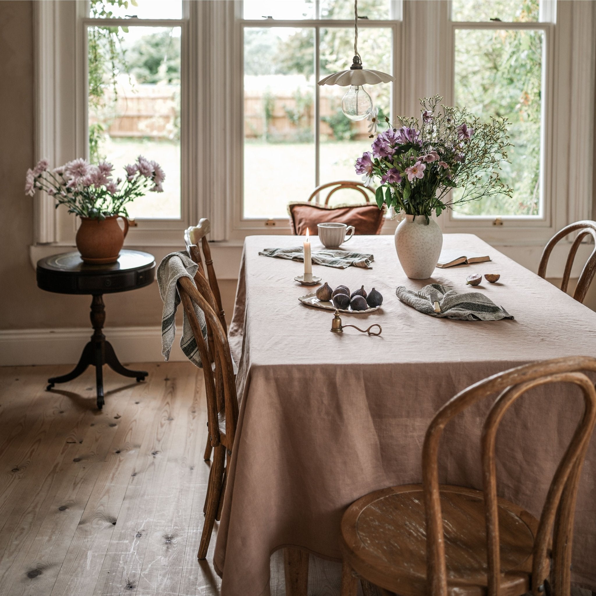 Invite subtle elegance to your table with our Lightweight Linen Tablecloth. Whether it is a cozy weekend breakfast or a grand celebration, this pure linen tablecloth will become a beautiful canvas for the gathering. Delicate linen adds lightness to the table setting and allows this table linen piece to pair easily with classic or modern tableware. Comes in standard and bigger sizes to fit wider tables.