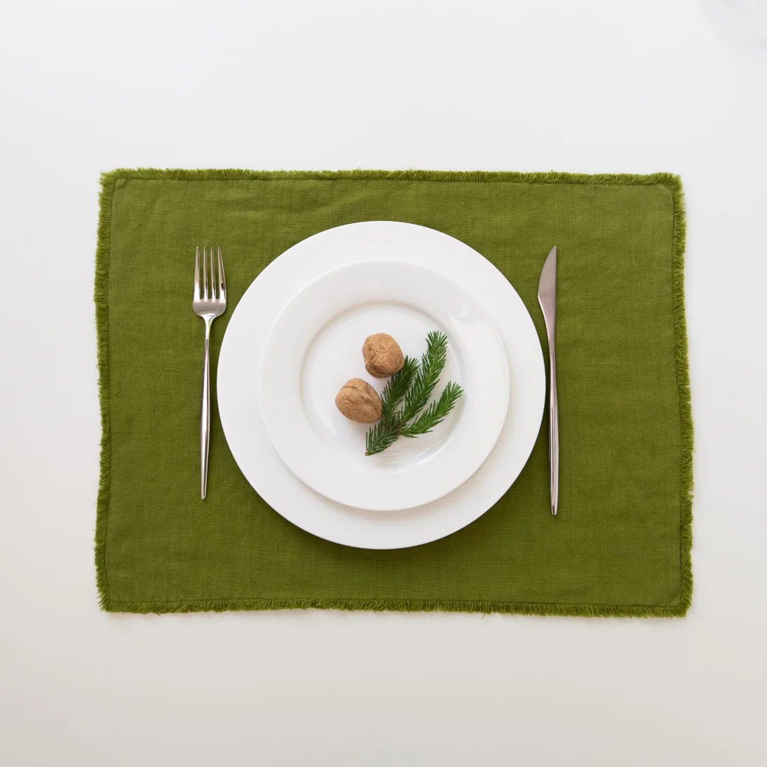 Make the Christmas dinner gathering magical for you and your guests. Little but lovely, our Linen Placemats with Fringe can make any table setting feel special and memorable. Hand-made of natural linen and decorated with elegant fringes this table linen piece can be used on its own or beautifully matched with a tablecloth and napkins.