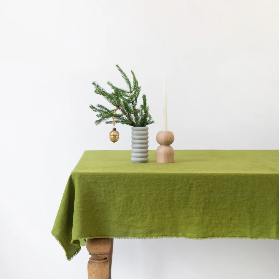 Gather your loved ones around a beautifully set Christmas table. Whether going for an understated or luxurious look, this elegant Linen Tablecloth with Fringe is guaranteed to set a joyful holiday mood. Hand-made of high-quality European linen, it will be a stunning addition to your dining room.
