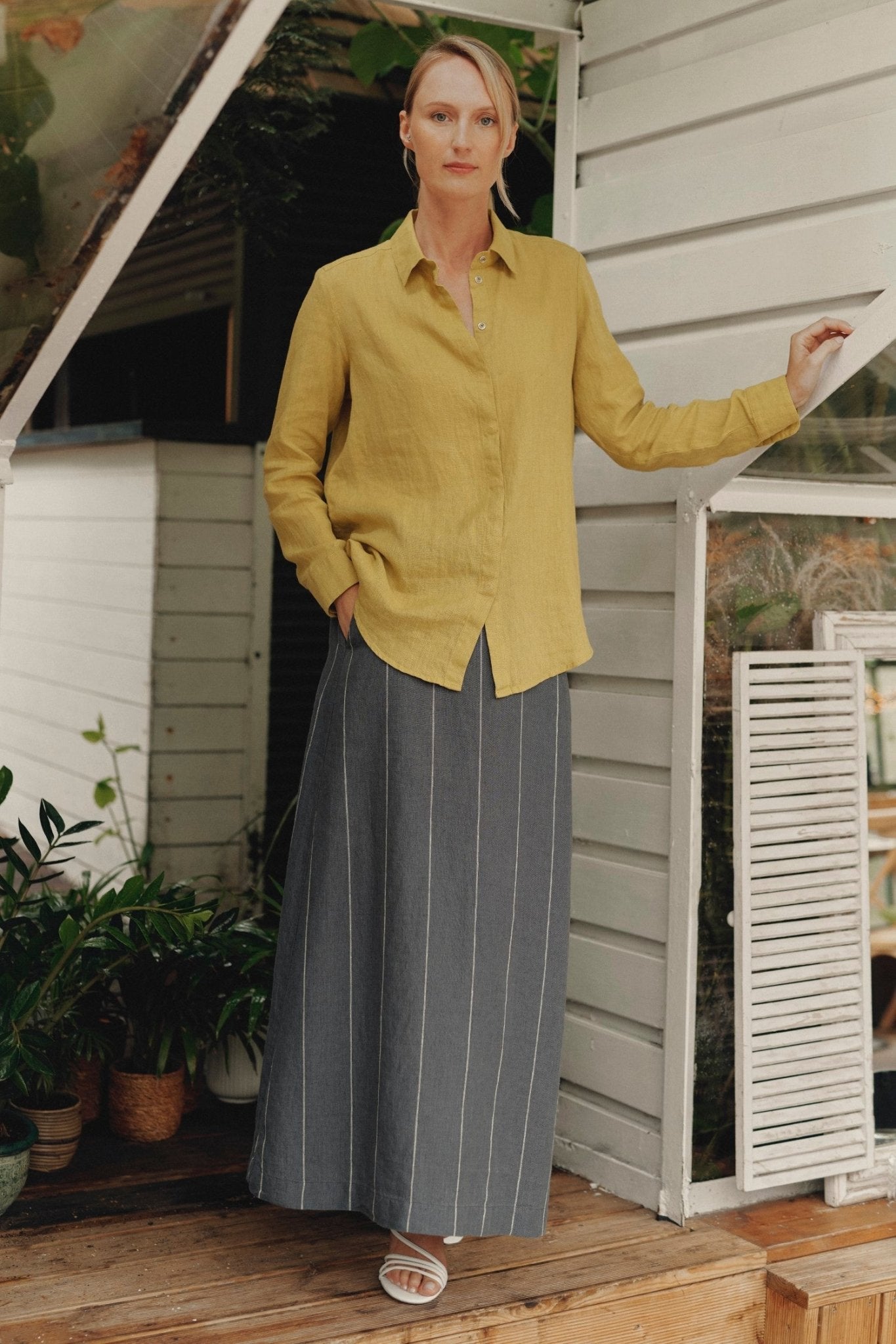The Jasmine skirt radiates super elegance and exclusivity with its silhouette that beautifully elongates the figure. This skirt is destined to become an essential part of your wardrobe. Pair it with different footwear, shirts, or tops to effortlessly create fresh, sophisticated looks, perfect for both a casual office day and a special date night.