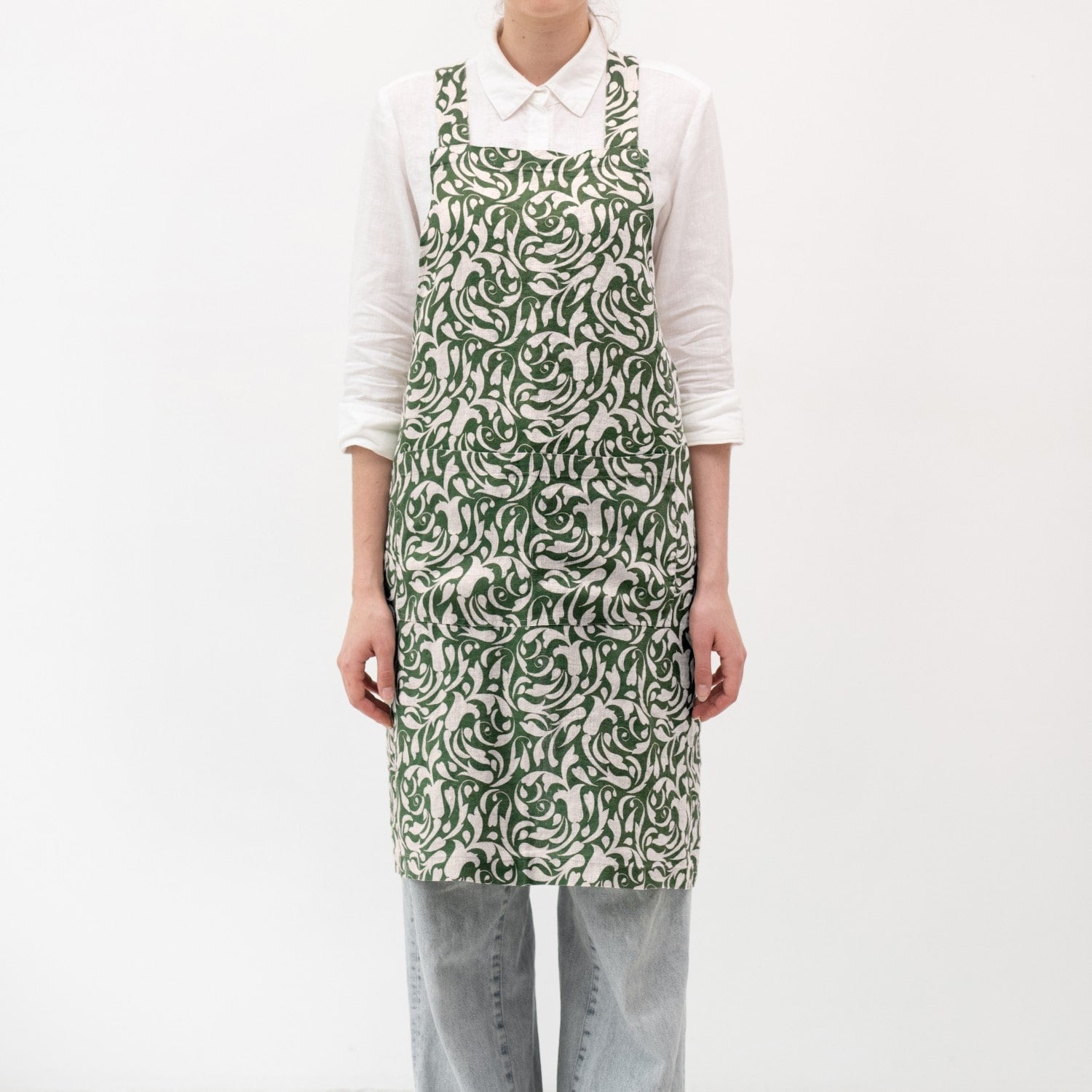 Evergreen Damask Linen Crossback Apron