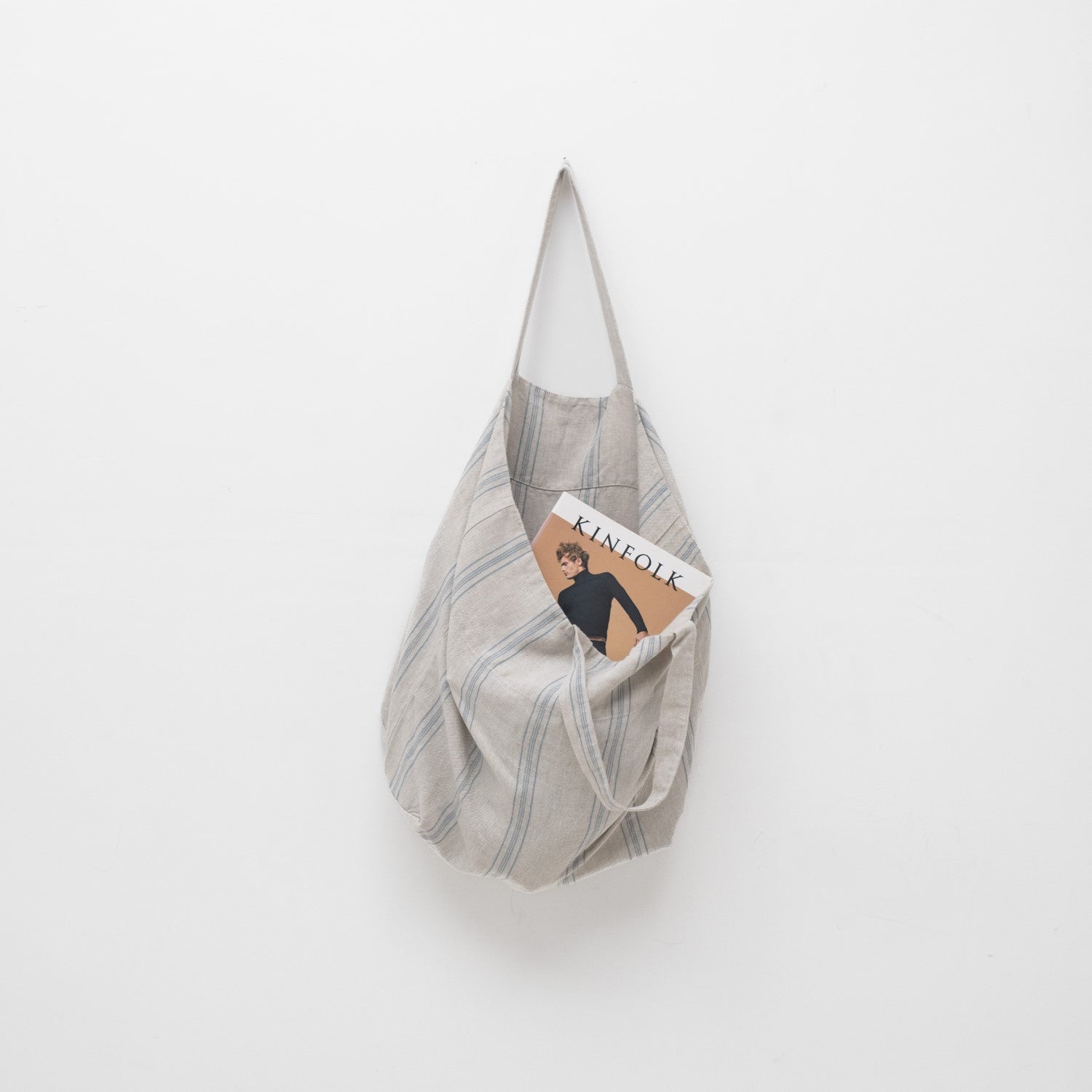 Grey Blue Wide Stripe Rustic Linen Big Bag