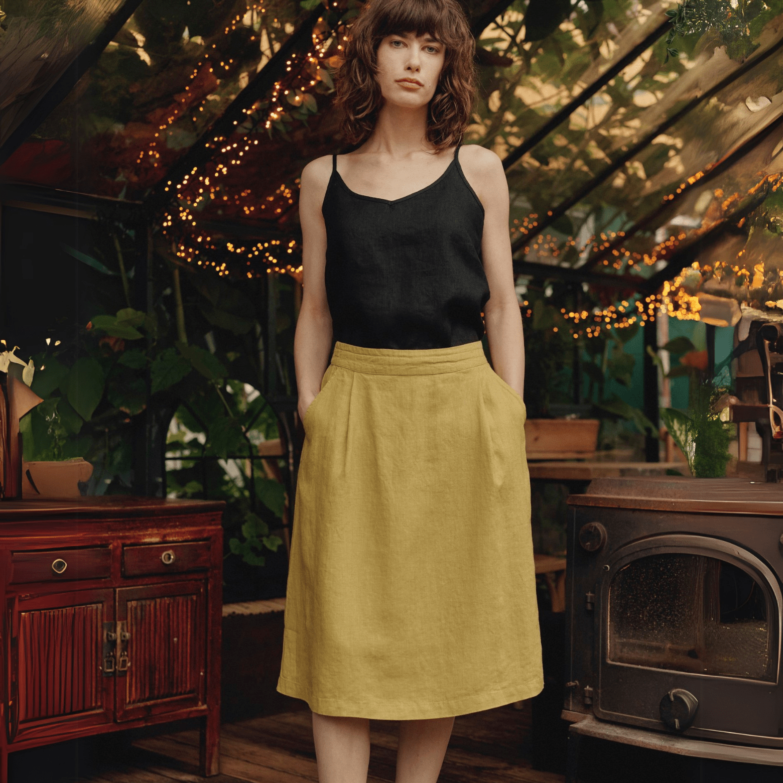 Lemon Curry Linen Tulip Skirt