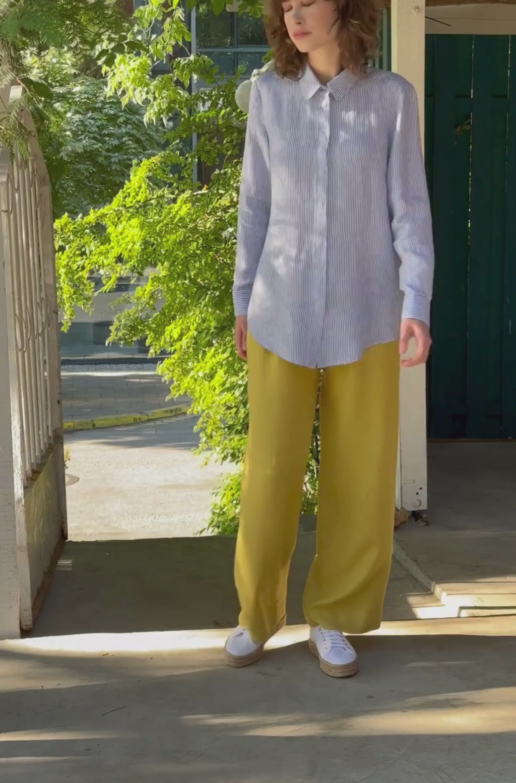 Incredibly easy-to-wear and stylish, these Willow trousers will be a true centerpiece of the outfit however you wear them. Lightweight linen creates a flowing effect with each step you take while an elastic waistband brings an additional touch of comfort.