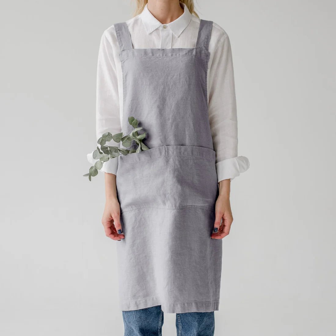 Light Grey Linen Crossback Apron