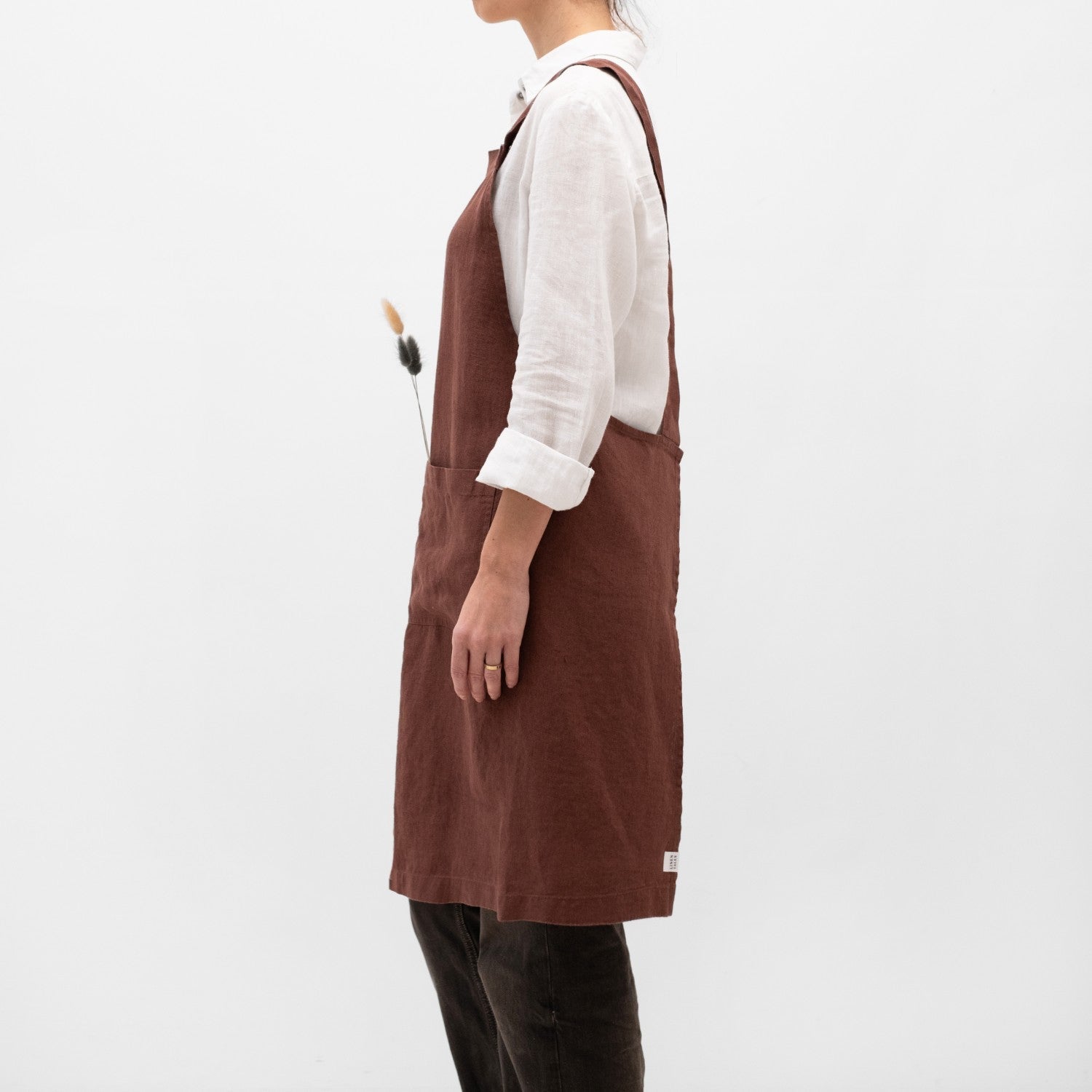 Chocolate Linen Crossback Apron