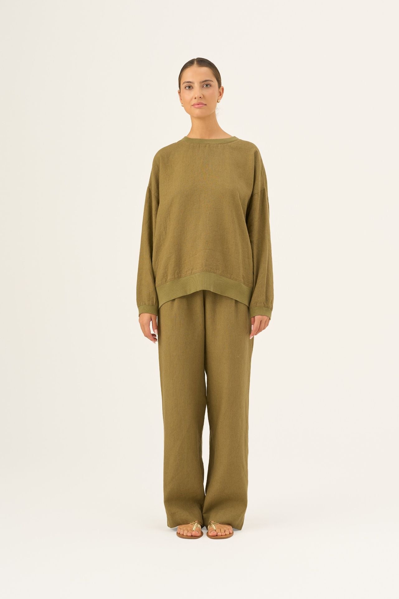 Olive Khaki Linen Dahlia Jumper