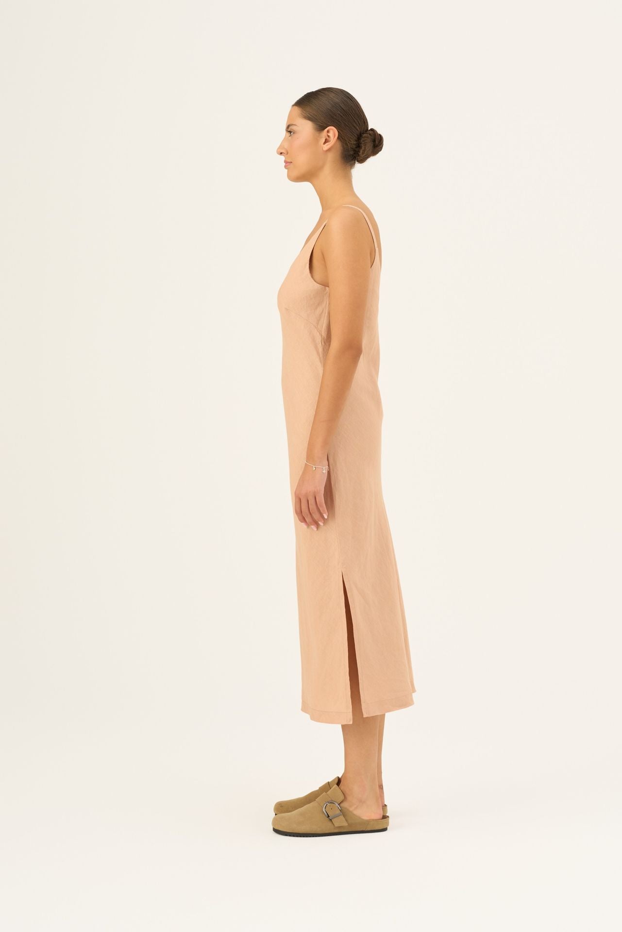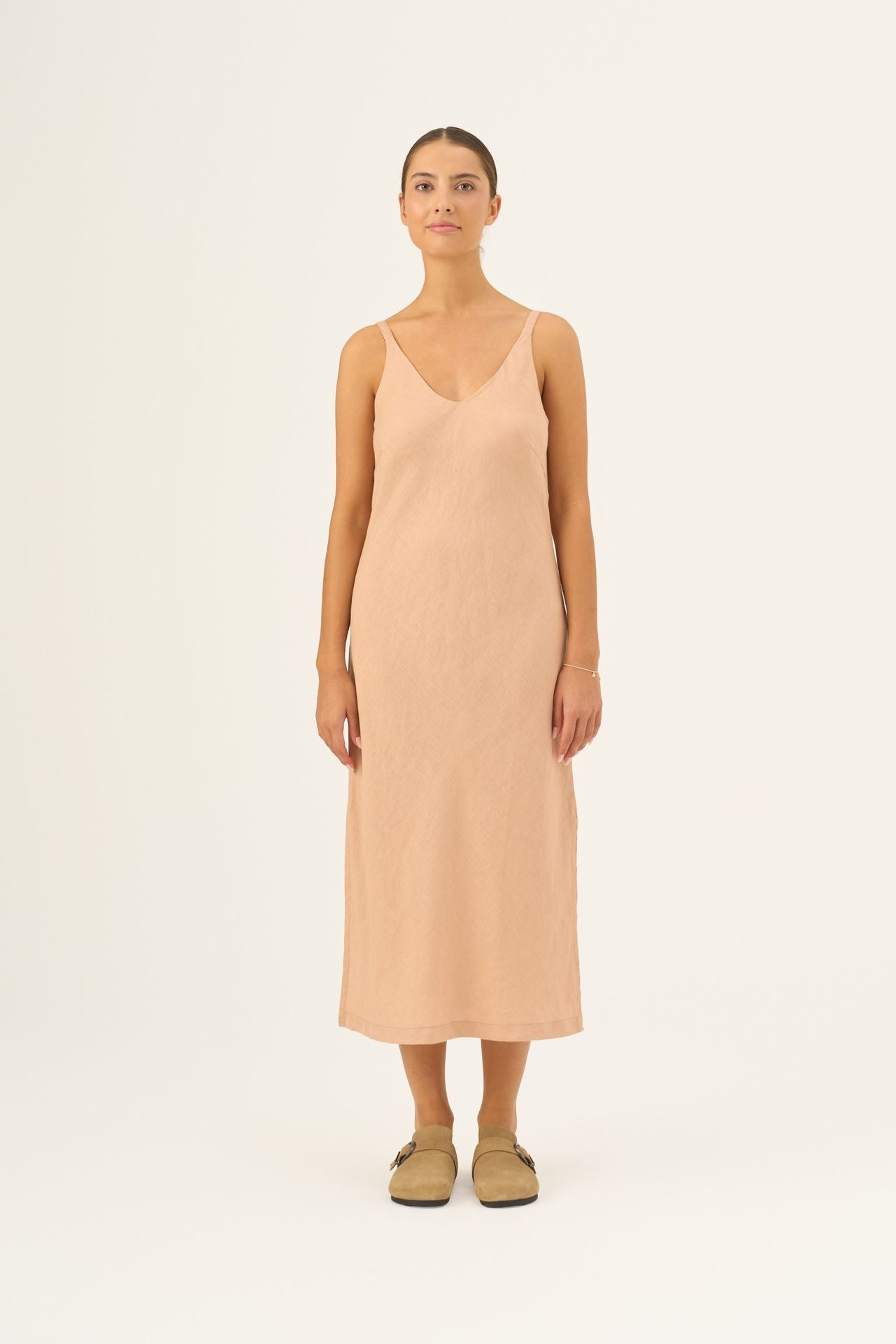 The Chamomile Dress is the epitome of relaxed summer elegance. This flowing strap dress features a flattering loose fit for all-day comfort. Its design is subtly sophisticated, boasting both an elegant V-neck and V-back for beautiful duality. Subtle side splits ensure freedom of movement and a graceful flow, making Chamomile a versatile and indispensable piece for any warm-weather event.