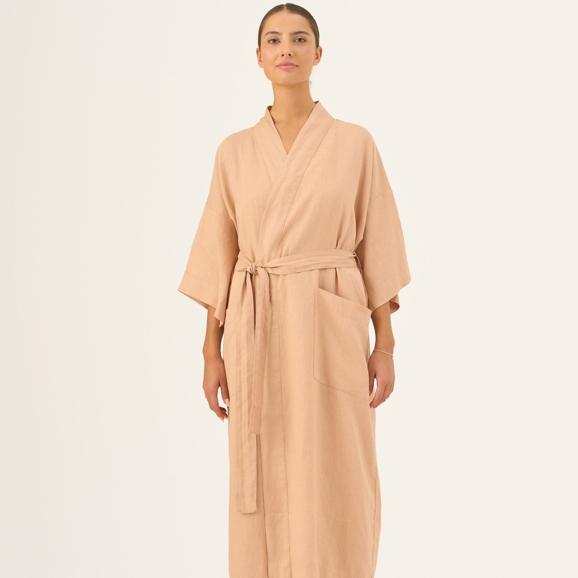 Lounge in style with our soft Summer Bathrobe. Incredibly pleasant to touch, it is a perfect piece to wear in the morning, evening, or whenever you feel like it. Greater length, wider sleeves, and lightweight fabric make this versatile robe a wearable comfort zone.