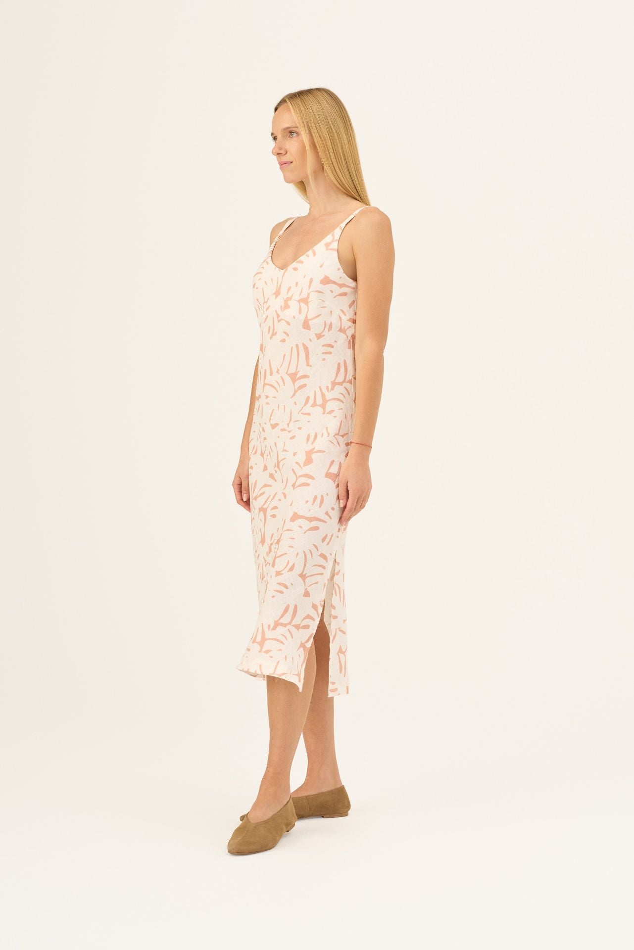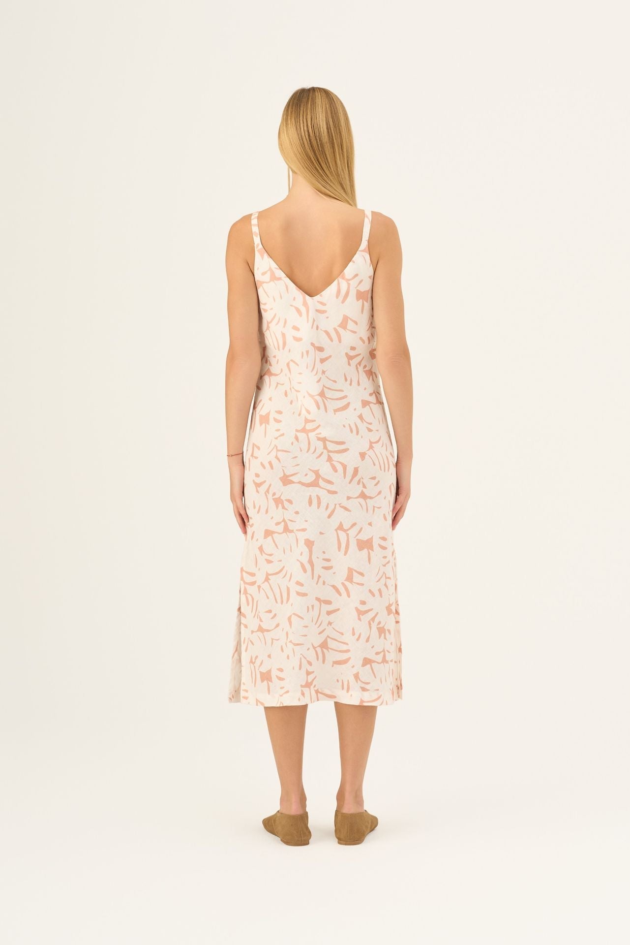 The Chamomile Dress is the epitome of relaxed summer elegance. This flowing strap dress features a flattering loose fit for all-day comfort. Its design is subtly sophisticated, boasting both an elegant V-neck and V-back for beautiful duality. Subtle side splits ensure freedom of movement and a graceful flow, making Chamomile a versatile and indispensable piece for any warm-weather event.