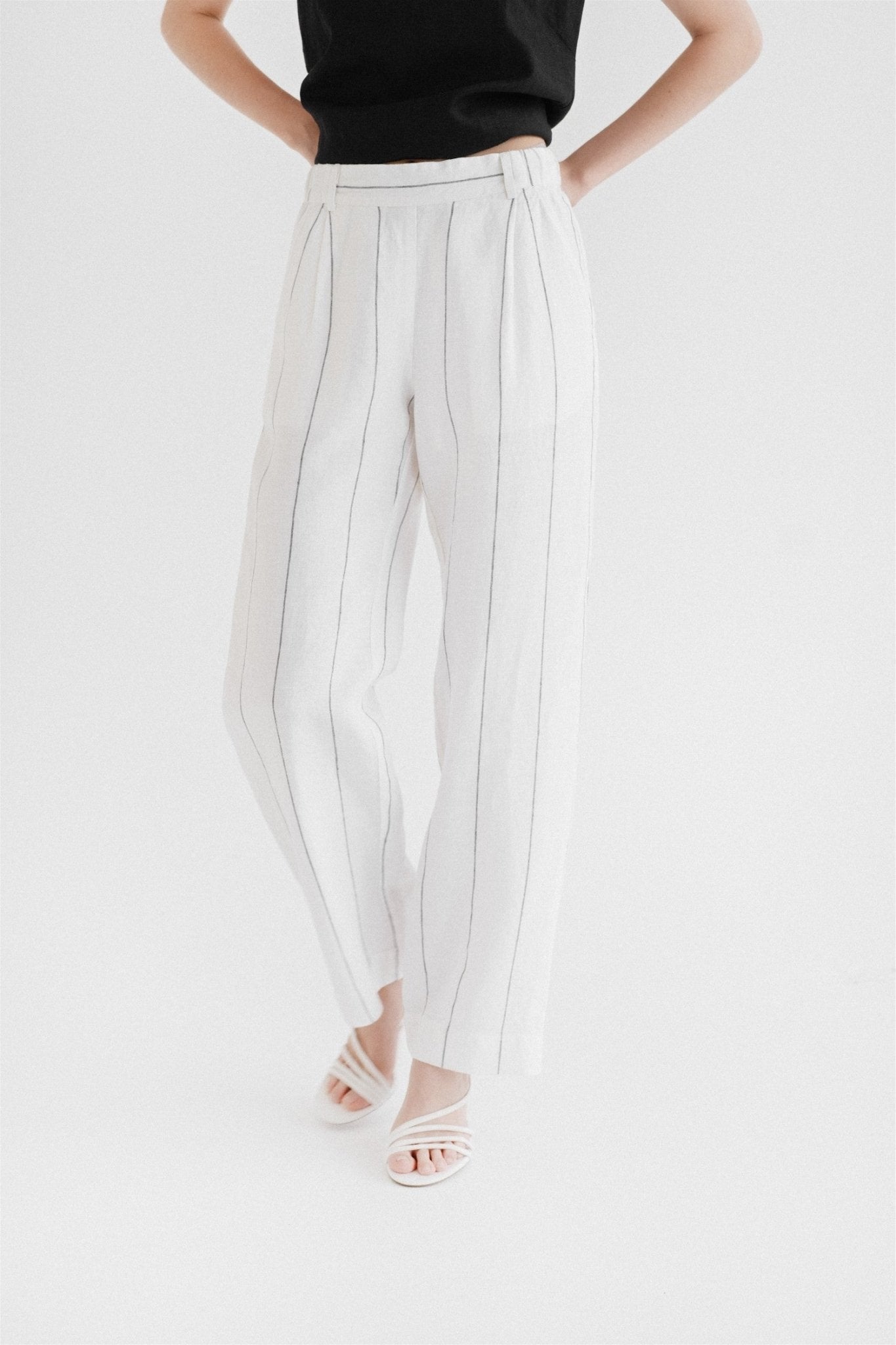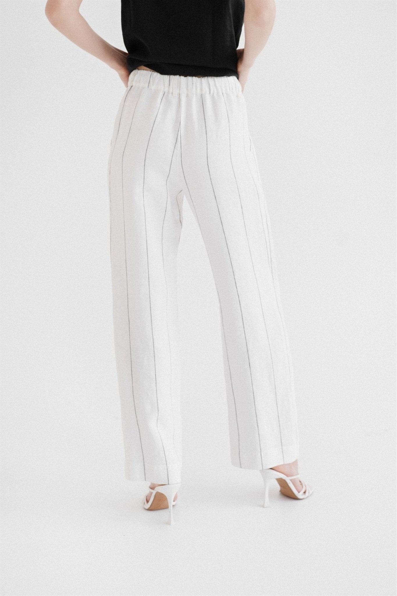 Milk White with Grey Stripe Linen Willow Trousers