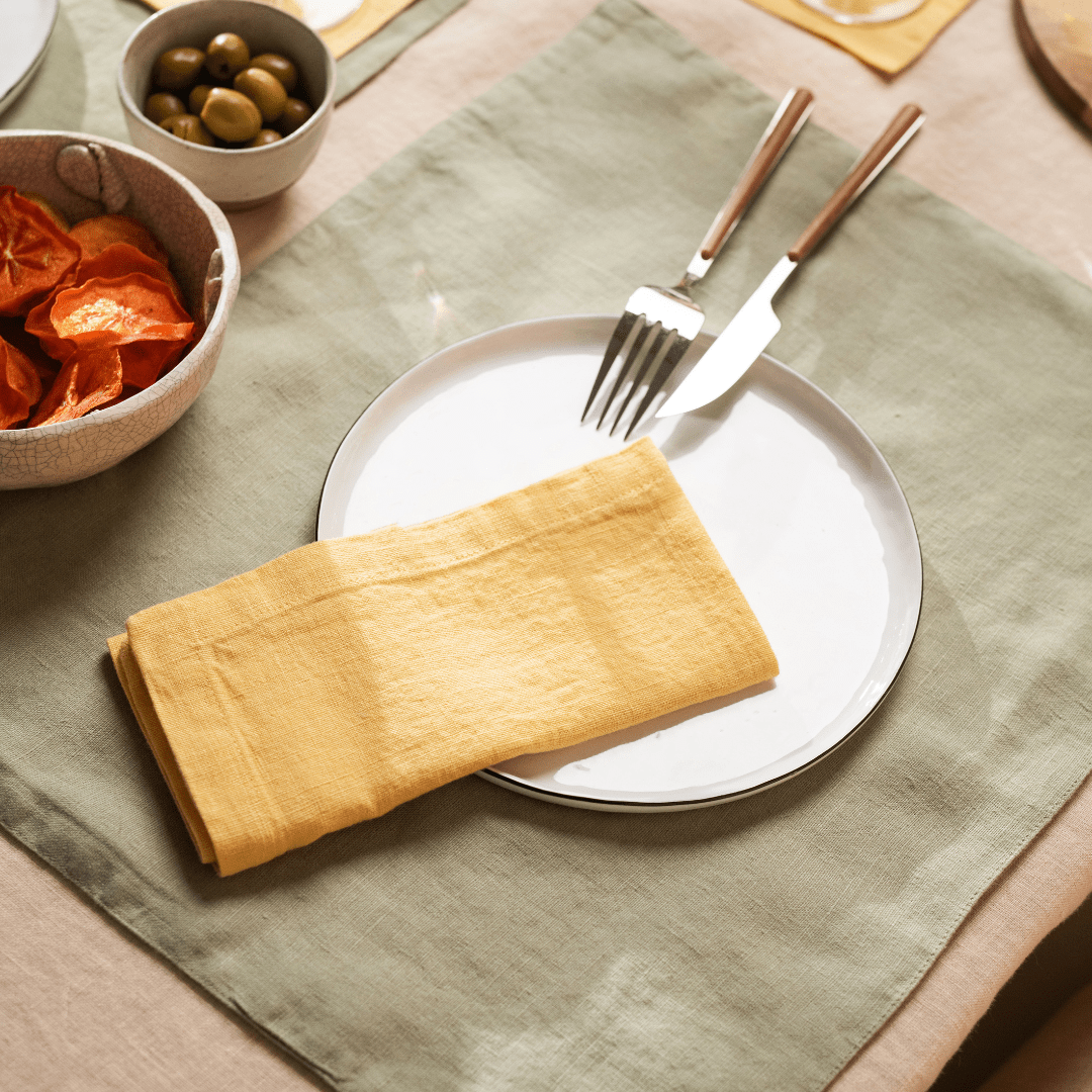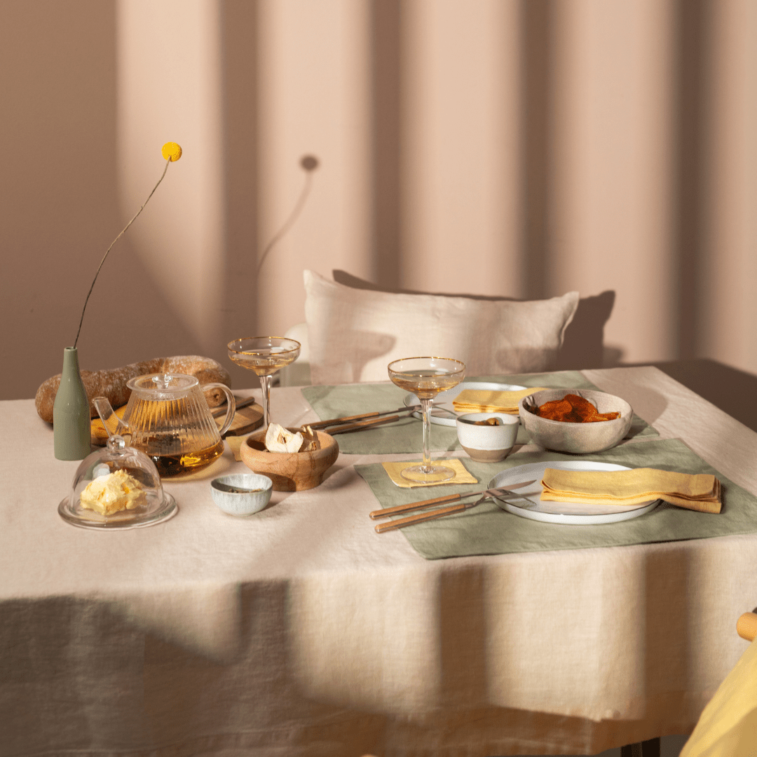 To avoid shrinkage, the machine washing temperature should be 40°C / 100°F; for thin linen fabrics, avoid using a washing machine; it’s best to do it by hand. Avoid harsh powder detergents to clean the pieces and use oxygen-based bleach only on white linen. For best drying results, hang-dry your linen; if you don’t have such an opportunity, use a tumble on low and remove it while still damp. You can iron the fabric for a neat look, but we encourage you to embrace a natural crinkled look.
