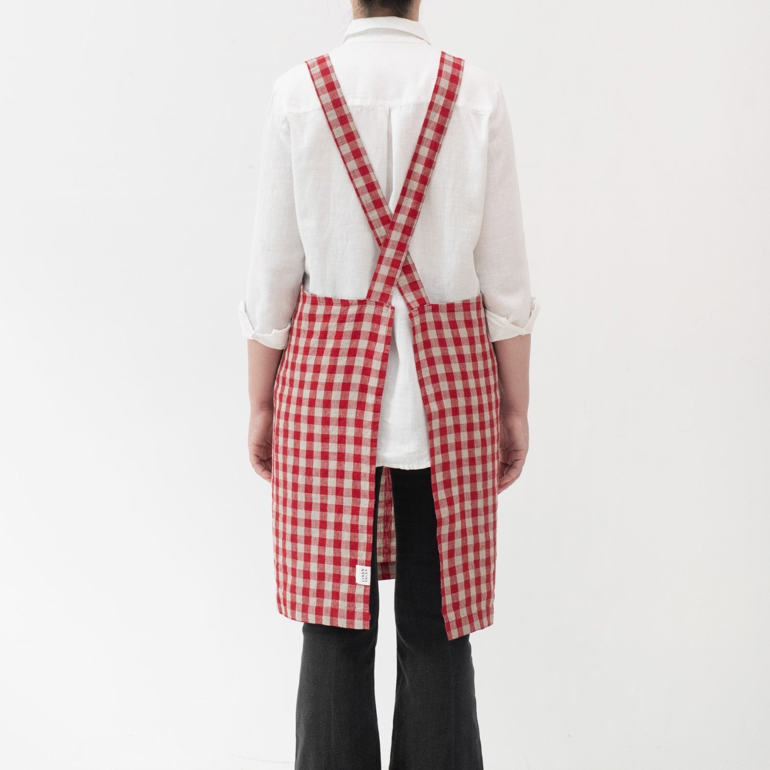 Red Gingham Linen Crossback Apron