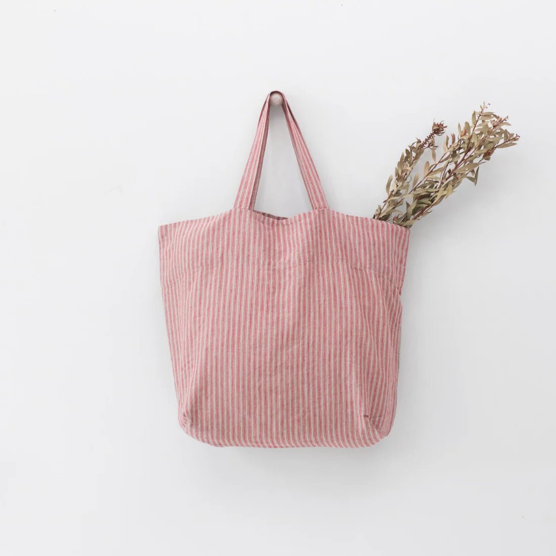 Red Natural Stripes Linen Big Bag