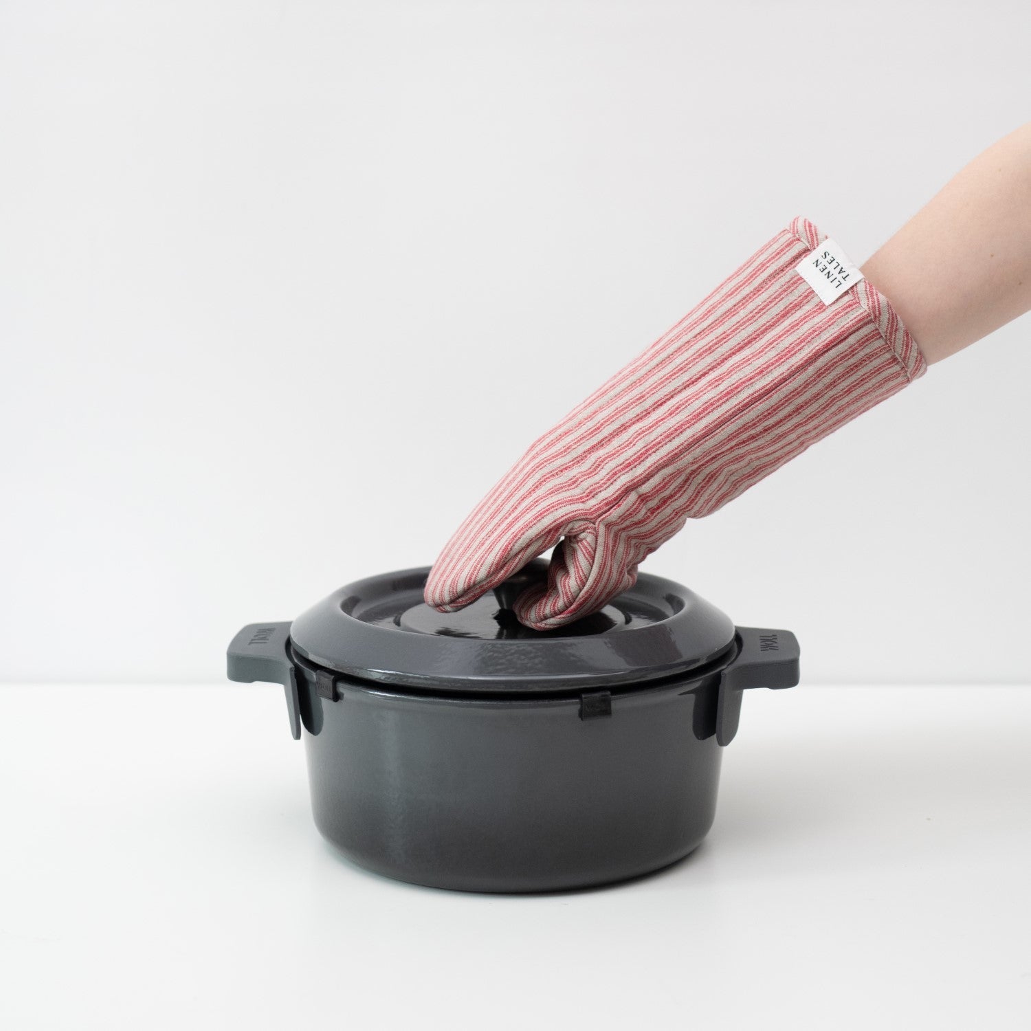 Red Natural Stripes Linen Oven Mitt