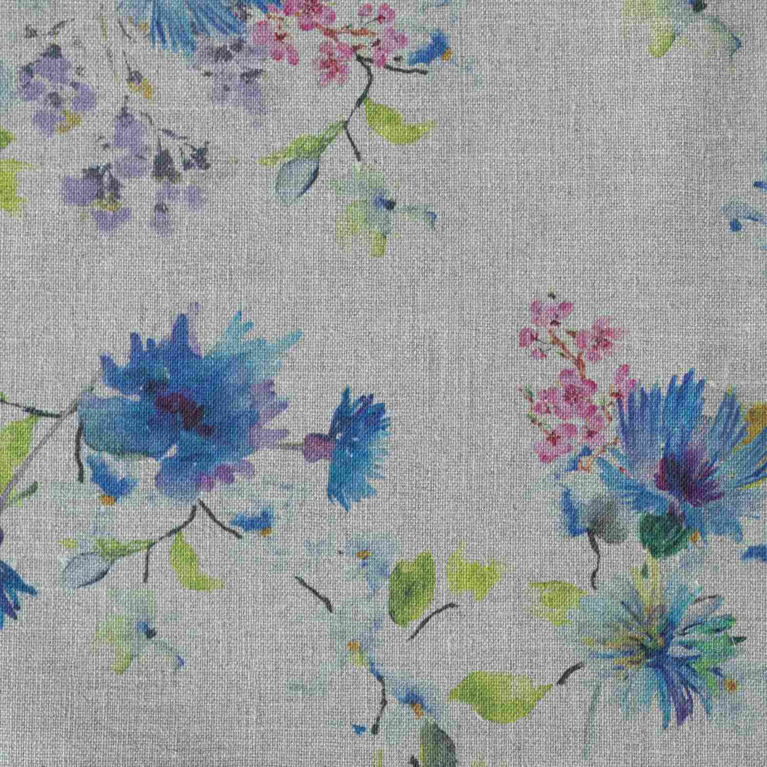 Unwashed Flowers on Light Natural Linen Fabric 185 g/sq.m