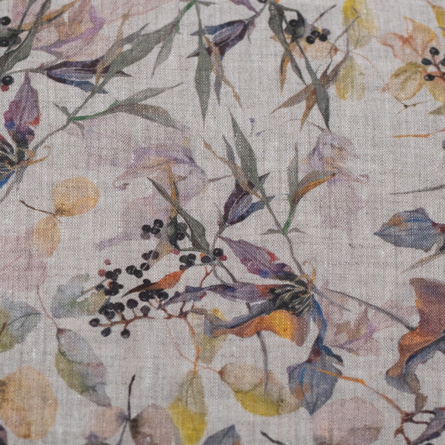 Unwashed Meadow on Light Natural Linen Fabric 185 g/sq.m