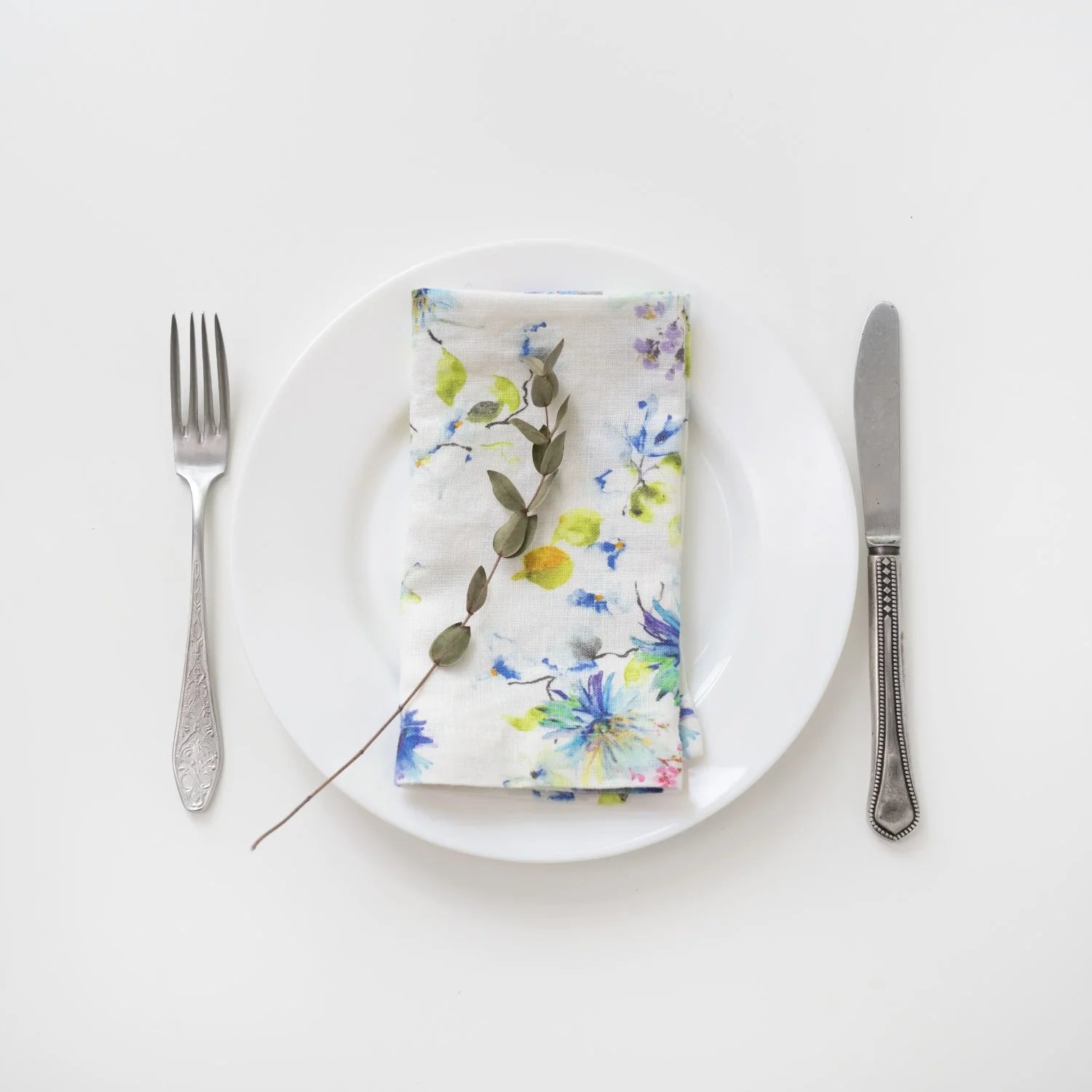 LIMITED EDITION White Flowers Linen Napkins Set of 2
