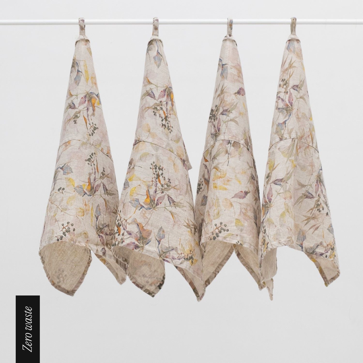 Zero Waste Meadow on Natural Linen Kitchen Towels Set of 4