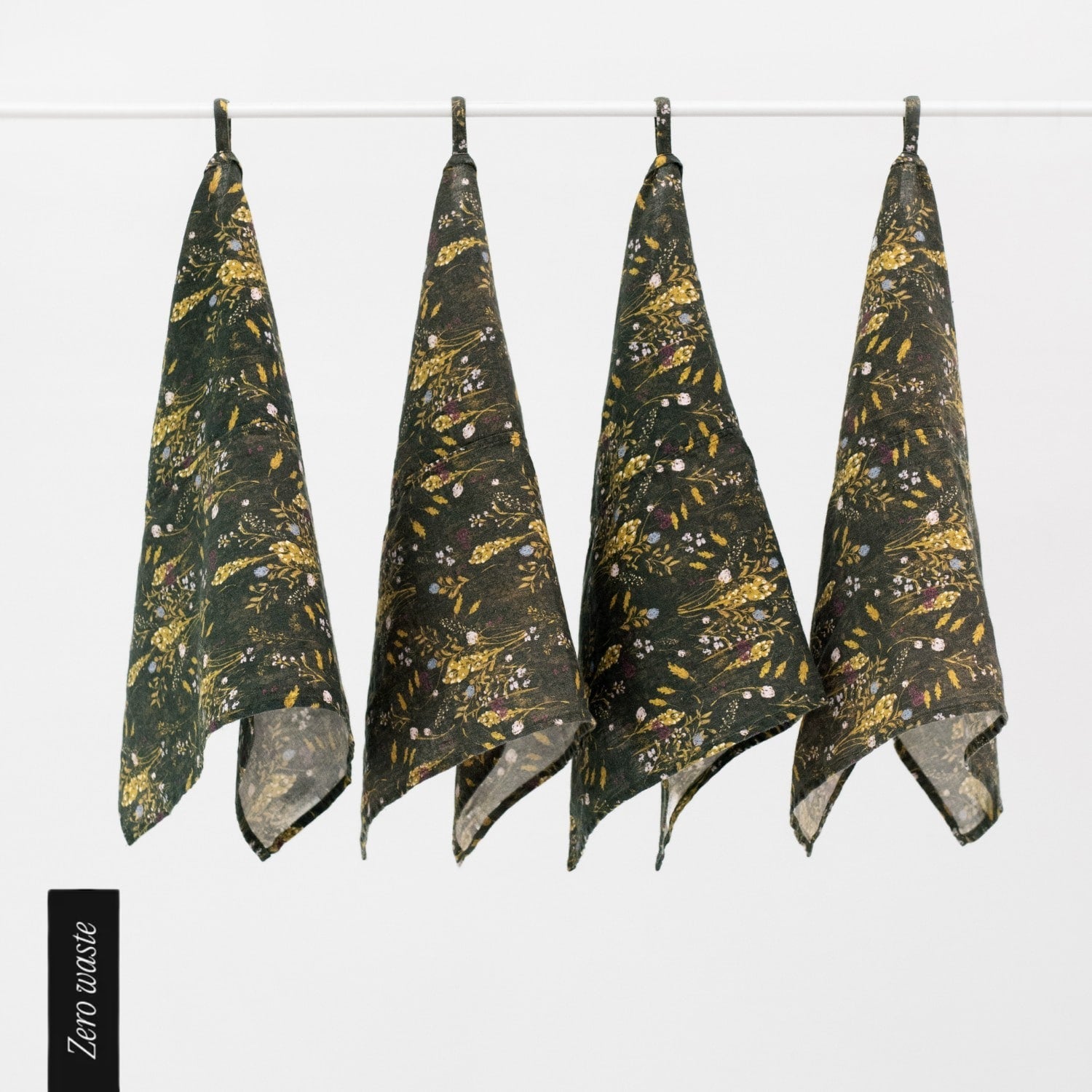 Zero Waste LIMITED EDITION Woodland Linen Kitchen Towels Set of 4